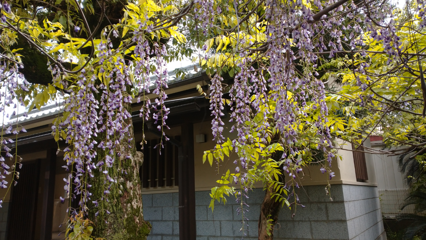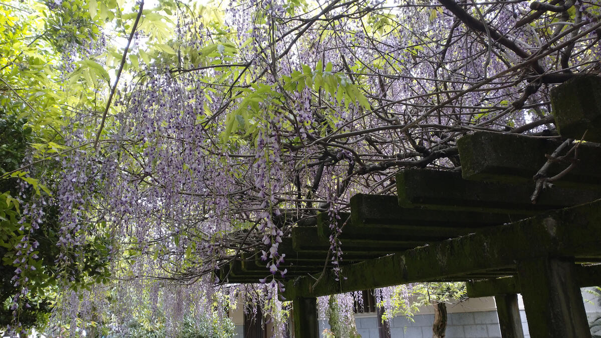 また、お時間に余裕のある方はことでん琴平駅の隣にある北神苑(高灯籠)にも是非とも足を運んでみてください。こちらでは、江戸時代の絵師・大原東野が丹精を込めて育てた紫の藤が満開です。