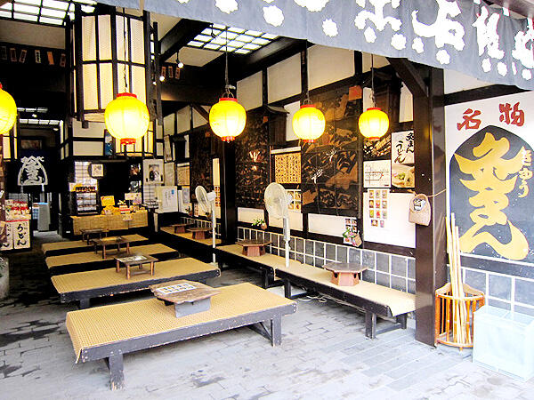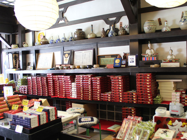 甘酒・和菓子セット・ぜんざい等、疲れを癒やすお菓子やお飲物をご用意し、皆様のお越しをスタッフ一同お待ち申し上げます。 また、お茶を飲みながら「名物灸まん」「灸まんうどん」などのお買い物や宅配手続もできますので、進物やお土産に是非ご利用ください。
