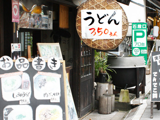 なかでも「しょうゆうどん」の虜になった方も数多く、県外からもこの味を求めて訪れるお客様が後を絶ちません。建物は1850年の江戸時代に建築された築150年の門前町で最も古いもの。歴史と風格のある古木に囲まれながら、本場讃岐うどんの力をご堪能ください。