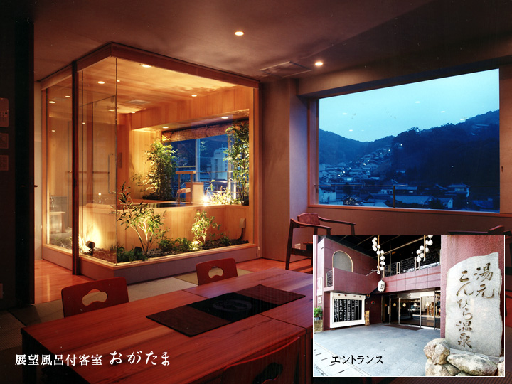 温泉露天風呂と瀬戸内の旬を味わう。享保10年(1725年)より『志らがや』として創業、15代続く老舗旅館。故13代目が『八千代』と改名しました。また当館は『こんぴら温泉』沸出の地、湯元の宿です。絶景の展望露天風呂、和みの貸切風呂、瀬戸内の旬の食材を使った贅沢なお料理で、ゆったりとした格別の一時をお過ごしください。