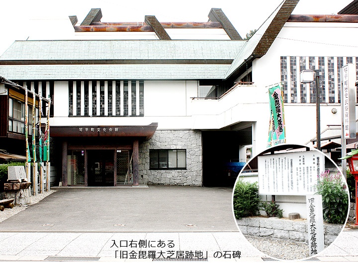 日本最古の芝居小屋と知られる旧金毘羅大芝居(金丸座)の跡地に建っている琴平町文化会館の1階。
